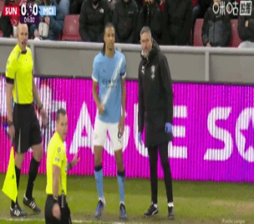 第3分鐘,阿克開場解圍受傷,簡單治療后重新上場